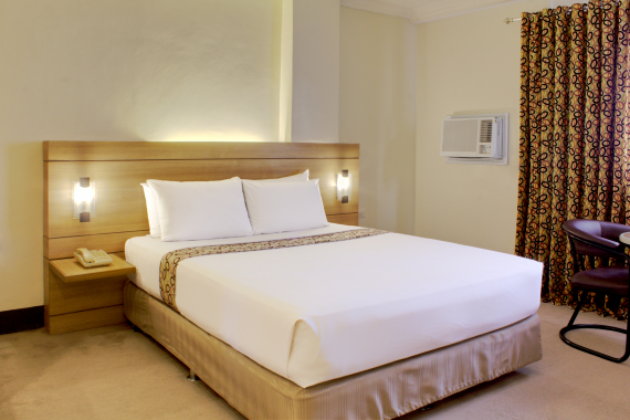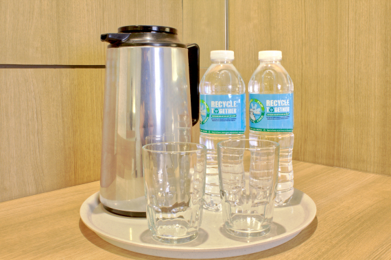 Located on a high floor, our top-tier room offers a spacious bed, a relaxing bathtub, a smart TV, and complimentary water and slippers for added comfort